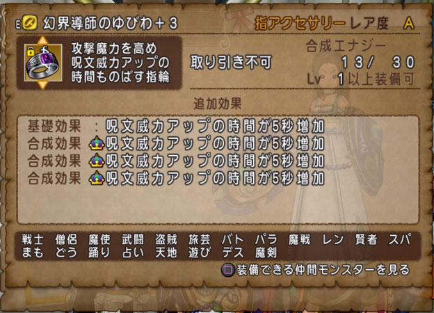 幻界導師のゆびわの合成効果「呪文威力アップの時間が+5秒増加」の最後の1つがつかなくて放置していたのですが。