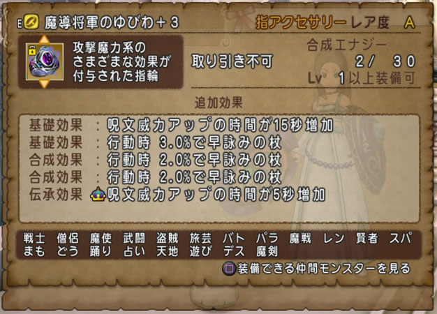 先行して使っていた魔導将軍のゆびわに伝承させて無事完成です。