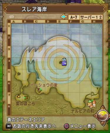 スレア海岸の紫のほこらに向かったら、視界の隅にちょっと違和感のある物体が。