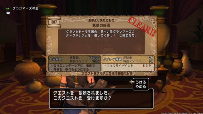 これで外に立っている語り部レーミに話しかければクエスト完了!