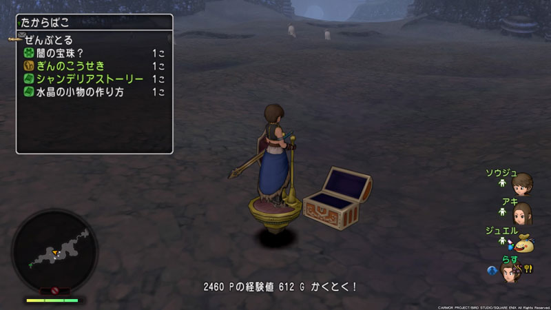 通常ドロップの「水晶の小物の作り方」を落としてくれて、レアドロの「シャンデリアストーリー」はおどるほうせきが盗んでくれた模様。