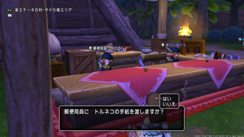 ボスを討伐したあと魔法の迷宮から抜けて郵便局の人に話しかけたら、まずクエストの方に反応してくれるのでそのまま進めてここまでは順調に終了。
